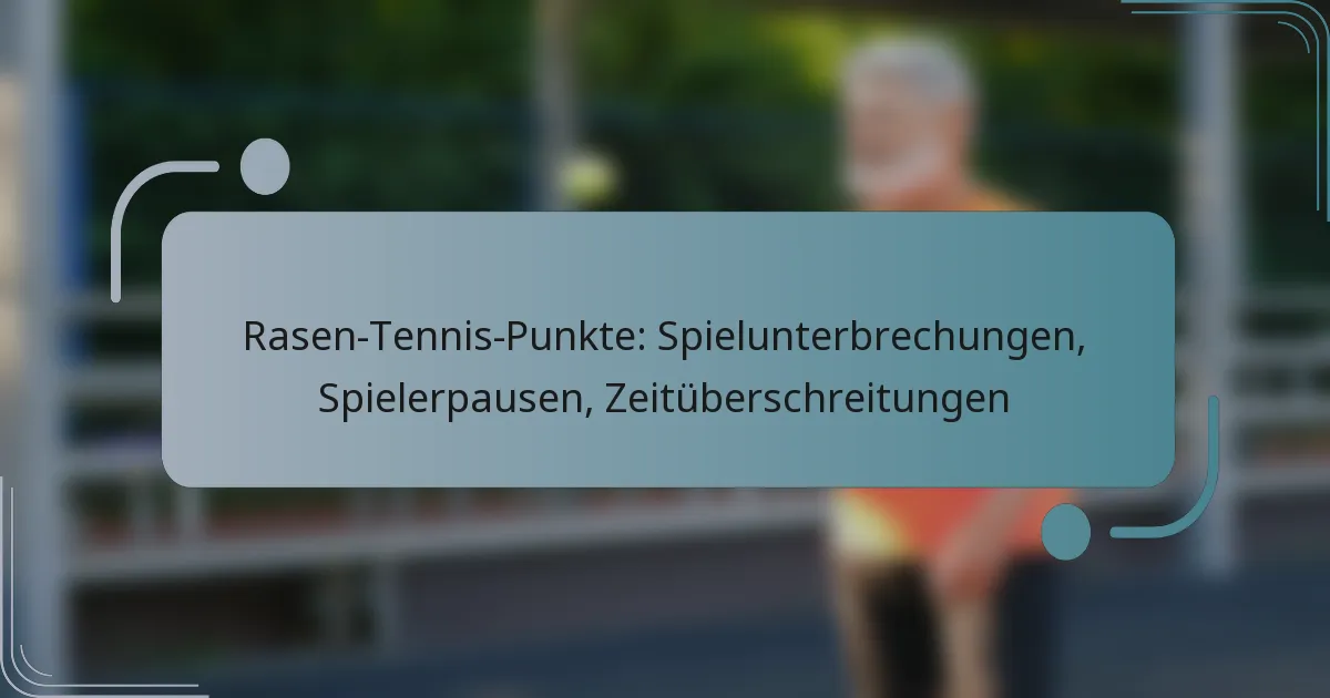 Die Punktevergabe im Rasentennis umfasst verschiedene Elemente, die den Spielfluss unterbrechen können, darunter Spielunterbrechungen, Pausen der Spieler und Zeitüberschreitungen. Spielunterbrechungen können durch Faktoren wie Wetter oder Verletzungen verursacht werden, während Pausen der Spieler für notwendige Erholung oder medizinische Betreuung genutzt werden. Darüber hinaus treten Zeitüberschreitungen auf, wenn Spieler die vorgegebene Zeit zwischen den Punkten überschreiten, was ihre Leistung und die Gesamt-Dynamik des Spiels beeinträchtigen kann. Das Verständnis dieser Aspekte ist entscheidend für die Wahrung der Integrität des Spiels.