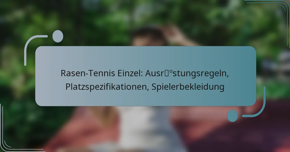 Einzel-Lawn-Tennis beinhaltet spezifische Ausrüstungsregeln, die die Standards für Schläger, Bälle und Materialien festlegen und faires Spiel in Wettbewerben fördern. Das Design des Platzes, das für Eins-gegen-Eins-Spiele ausgelegt ist, umfasst definierte Abmessungen und Oberflächenarten, die für ein korrektes Spiel unerlässlich sind. Darüber hinaus müssen die Spieler die Bekleidungsrichtlinien einhalten, die Komfort und Leistung priorisieren und ihre Beweglichkeit und Effektivität während der Spiele verbessern.
