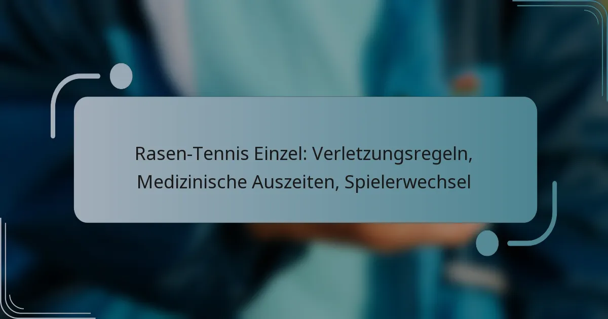 Im Einzelspiel im Rasen-Tennis sind die Regeln für Verletzungen entscheidend, um die Sicherheit der Spieler und die Integrität des Spiels zu gewährleisten. Sie legen fest, was als Verletzung gilt und welche Bewertungsverfahren dabei zu beachten sind. Medizinische Auszeiten bieten den Spielern die Möglichkeit, notwendige medizinische Hilfe zu erhalten, wobei diese Pausen streng reguliert sind, um Fairness zu gewährleisten. Wichtig ist, dass Spielerwechsel nicht erlaubt sind; Athleten müssen das Spiel beenden, es sei denn, sie sind durch Verletzungen oder Krankheiten handlungsunfähig, in diesem Fall können sie medizinische Auszeiten in Anspruch nehmen.