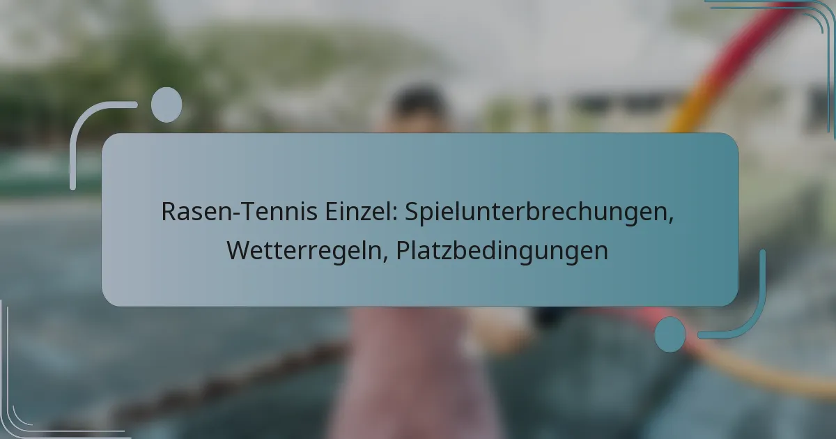 Spielunterbrechungen im Rasentennis-Einzel treten auf, wenn das Spiel aufgrund verschiedener Faktoren, wie Wetterbedingungen oder Spielerverletzungen, gestoppt wird. Das Verständnis der Regeln, die diese Unterbrechungen umgeben, ist sowohl für Spieler als auch für Zuschauer von wesentlicher Bedeutung, da sie festlegen, wie und wann die Spiele fortgesetzt werden können.